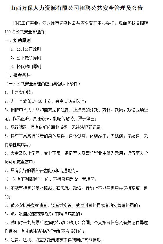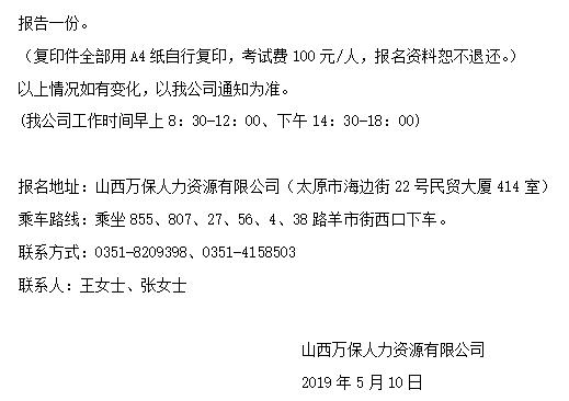 根據(jù)工作需要,經(jīng)古交市政府批準(zhǔn),現(xiàn)面向古交市公開招聘輔助工作人員30名。招聘工作由山西萬(wàn)保人力...